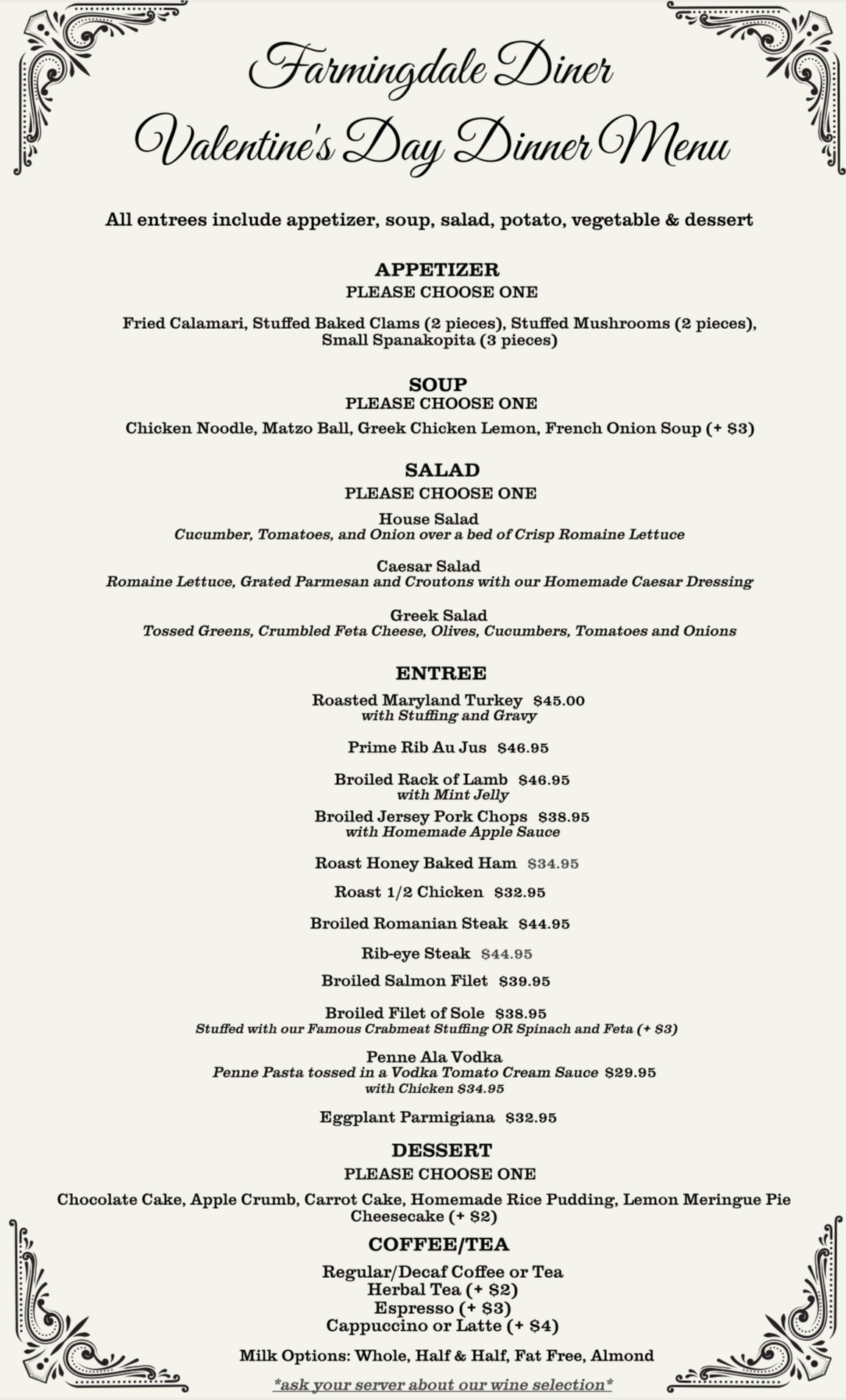 The servers are friendly and always remember me when I arrive. The portions are large and the food is excellent. Try this diner you won't be disappointed.